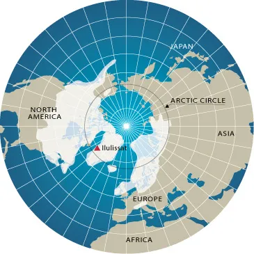 About 21,000 years ago, during the last ice age, the large ice sheets of the Northern Hemisphere covered an area of 30 million km2, including much of North America. Ilulissat was centrally placed in the glaciated regions of the Northern Hemisphere.
