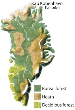 Forests of larch, spruce and birch covered most of Greenland about 2.3 million years ago, with heaths on high-lying areas.