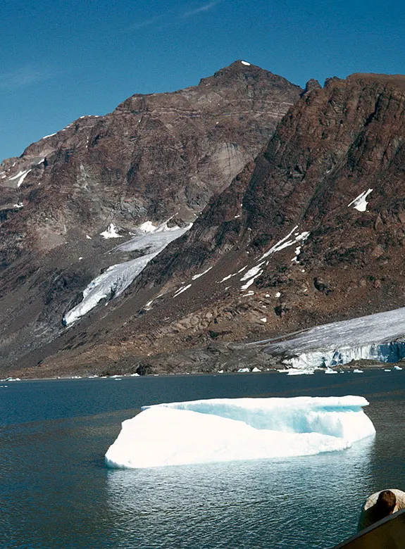 Gabbro Fjeld in the Skaergaard intrusion with three distinct leucocratic layers in the upper half of the mountain. The Skaergaard PGE-Au mineralisation is hosted in the gabbros that include the lower two leucograbbro layers.