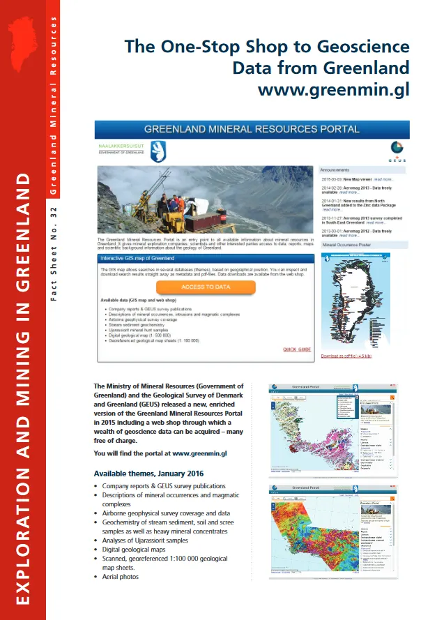 The Ministry of Mineral Resources (Government of Greenland) and the Geological Survey of Denmark and Greenland (GEUS) released a new, enriched version of the Greenland Mineral Resources Portal in 2015 including a web shop through which a wealth of geoscience data can be acquired – many free of charge.