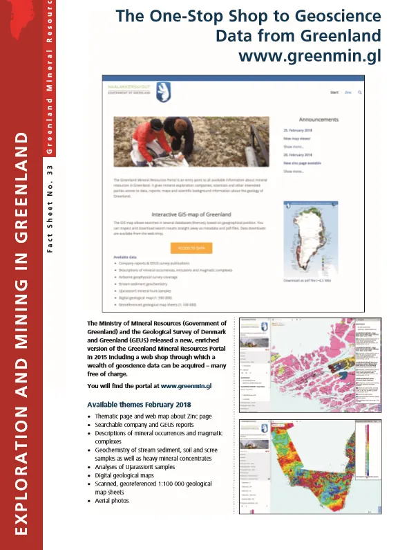 The Ministry of Mineral Resources (Government of Greenland) and the Geological Survey of Denmark and Greenland (GEUS) released a new, enriched version of the Greenland Mineral Resources Portal in 2015 including a web shop through which a wealth of geoscience data can be acquired – many free of charge.