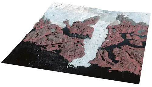 Satellite image of the icefjord and the surrounding region, seen from the west